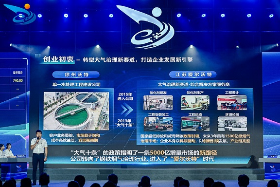 我公司總裁孔維維——南京理工大學化學與化工學院博士就“愛爾沃特--鋼鐵煙氣超低排放綠色革命的領軍者”項目參加此次比賽,孔維維講到:“國家現在要做減污降碳的工作,通過我們的技術,可以幫助企業減少很多氮氧化物的排放,也助力‘雙碳’目標的實現。”,為此,我們提出了從催化劑研發生產到裝置集成再到精準運維的全產業鏈解決方案。首先我們國際首創高效低溫脫硝催化劑,解決了鋼鐵煙氣低溫脫硝效率低的問題;其次我們建設了國內領先的催化劑生產線,并集成于國內首套大型燒結機煙氣低溫脫硝項目;最后我們開發出國內領先的運營維護技術。通過精準化噴氨控制技術、智能專業化運維平臺及專業化運維管理體系,實現排放達標率100%。